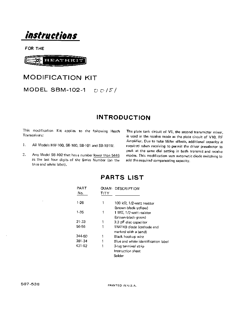 Heathkit HW/SB Modification Bulletin